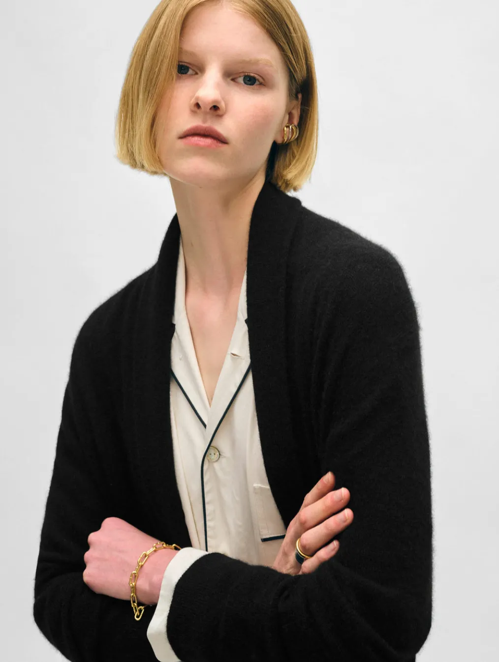 Cold weather mornings and snug nights in call for cashmere, so why not get all wrapped up in the pampering softness of our Long Cashmere Robe? Spun from the finest cashmere yarn, it features a sleek shawl collar, roomy patch pockets, and an easy fit that’s designed to effortlessly skim your shape. Cinch the draped, open front with the optional tie belt for an extra dose of warmth. For a fashionable twist, try styling it over jeans and booties.