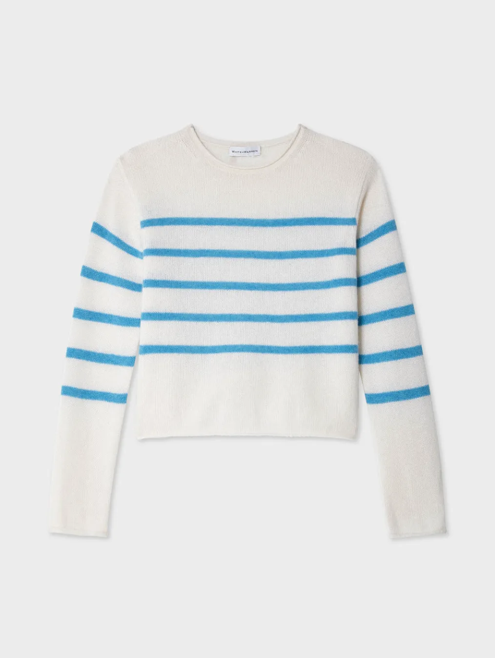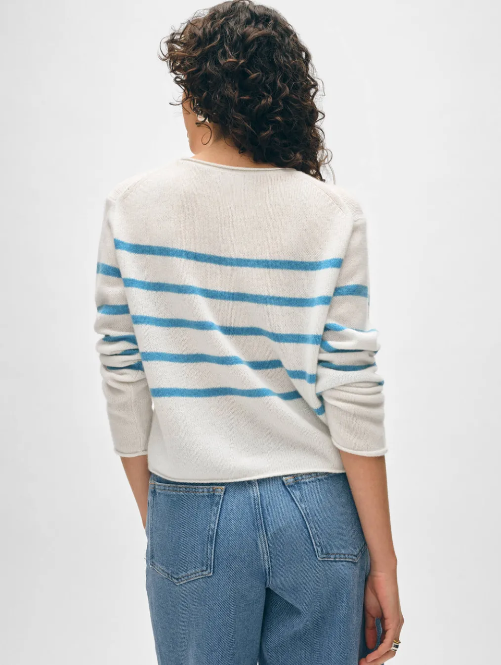 This crewneck sweater is made from featherweight cashmere so it’s perfect for effortless everyday wear. Designed with drop shoulders and roll trims, the relaxed-fitting style hits at the high hip for a leisurely look. Match your accessories to the contrasting stripes.