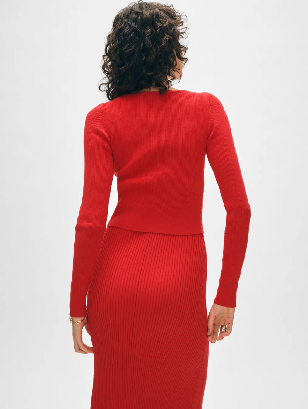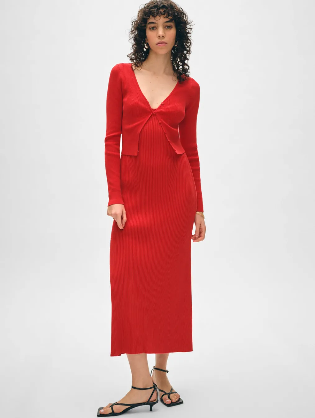 This ribbed cardigan is a part of a matching set with the Organic Cotton Ribbed Dress. Both are made from superfine organic cotton with a hint of stretch in a close, figure-flattering fit. Emulate the season’s styling by wearing it as part of a head-to-toe monochromatic look.